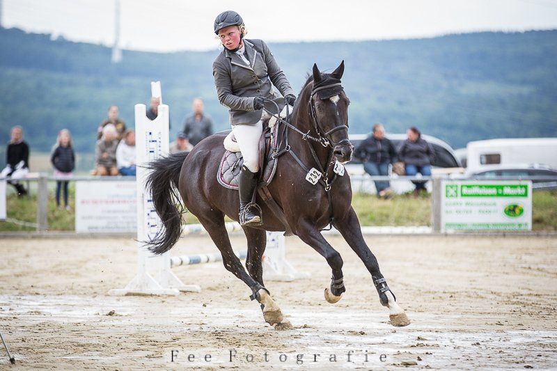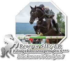 Dieser Black Velvet-Sohn mit dem klangvollen Namen Blackmore's Knight J hat es absolut in sich. Er ist nicht gerade einfach zu händeln, aber auch keine tickende Zeitbombe gottseidank. Der junge Rapphengst ist eben noch recht wild und stürmisch, das merkt man auch beim reiten, man muss ihn gut unterstützen und ihm noch sehr viel beibringen. Während seine Mutter, die irische Stute Daráine J, die auf Fürstenwalde beheimatet ist, eher springlastig ist, hat Blackmore's Knight J, der meist nur Kiko gerufen wird, von seinem Vater Black Velvet auch ein bisschen Potenzial in der Vielseitigkeit geerbt. Über Black Velvet muss man ja nicht viel sagen, da er durch einige seiner Nachkommen recht bekannt ist, man denke da nur an die auf Nereus stationierten Hengst GNs Bad Company SP und GNs Belfalas SP. Kiko jedenfalls ist auf dem besten Weg, in die Hufstapfen seines Vaters zu treten und wir sind sehr froh, ihn zu haben.
