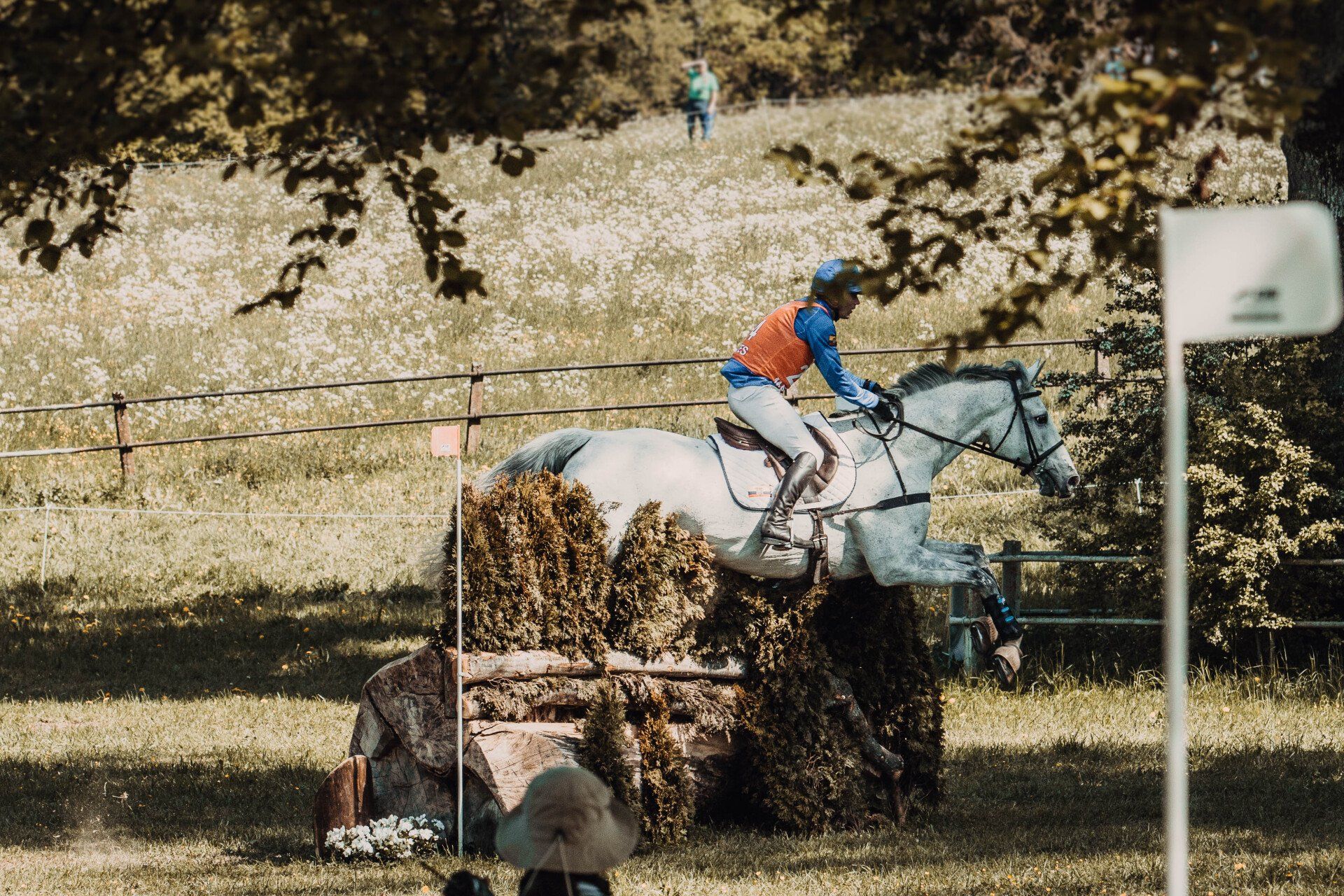 Im Geländeparcours zeigt Evergreen eine lebhafte und enthusiastische Haltung. Er hat eine Vorliebe für schnelle Galoppaden und ist dabei stets darauf bedacht, den nächsten Sprung schnell und präzise zu meistern. Sein Verhalten kann herausfordernd sein, da er gelegentlich ungeduldig und leicht erregbar ist.