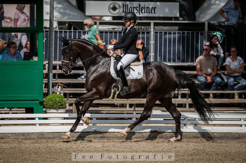In diesem Jahr purzelten ganz viele Rappen bei uns ins Stroh. So auch Regentin RS, die Anfang 2022 zur Welt kam. Dieses schüchterne Wesen in Übergröße hat ganz lange Storchenbeine und einen fast feenhaften Auftritt, wenn sie tanzt. Sie selbst weiß aber gar nicht, was sie für einen Eindruck hinterlässt, denn von ihrem Grundwesen her ist sie sehr zurückhaltend und muss nicht im Mittelpunkt stehen. Sie ist sehr lieb und ruhig sobald sie jemanden kennengelernt hat und wenn sie jemanden in ihr Pferdeherz geschlossen hat, ist sie äußerst loyal denen gegenüber, die sich Zeit für die Stute nehmen. Ihre langen Beine versteht sie in beinaher Perfektion zu bewegen und alle Reiter schwärmen nur so von ihrem Gangwerk, wenn sie von ihrem Rücken steigen. Dieses Pferd sollte man definitiv im Auge behalten, sobald die das Dressurviereck betritt.